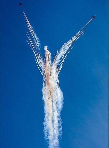 "Russian Knights" painted figure of an angel in the sky at the air show #avgeek Regards to author of the pics http://pic.twitter.com/Wadsph2cdZ — UAC Russia (@UAC_Russia_eng) July 5, 2016